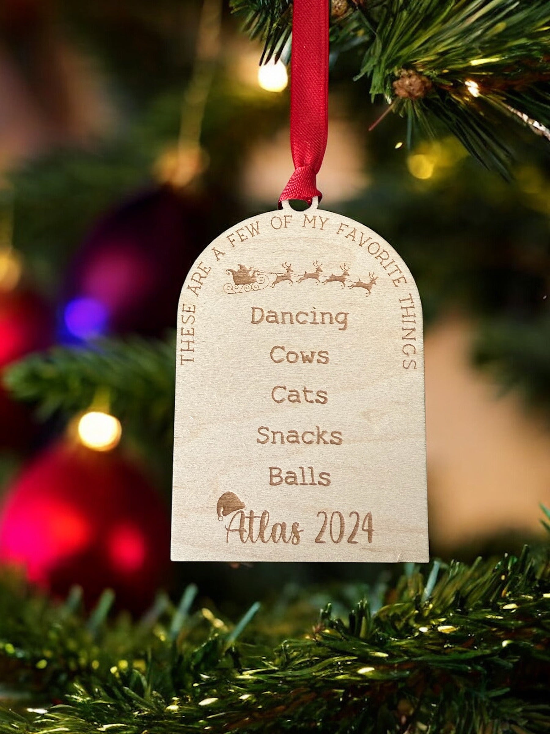 Capture the essence of cherished memories with our "A Few of My Favorite Things" Keepsake Ornament. Perfect for celebrating the unique personality and interests of your child, this ornament is a meaningful addition to your holiday decor.