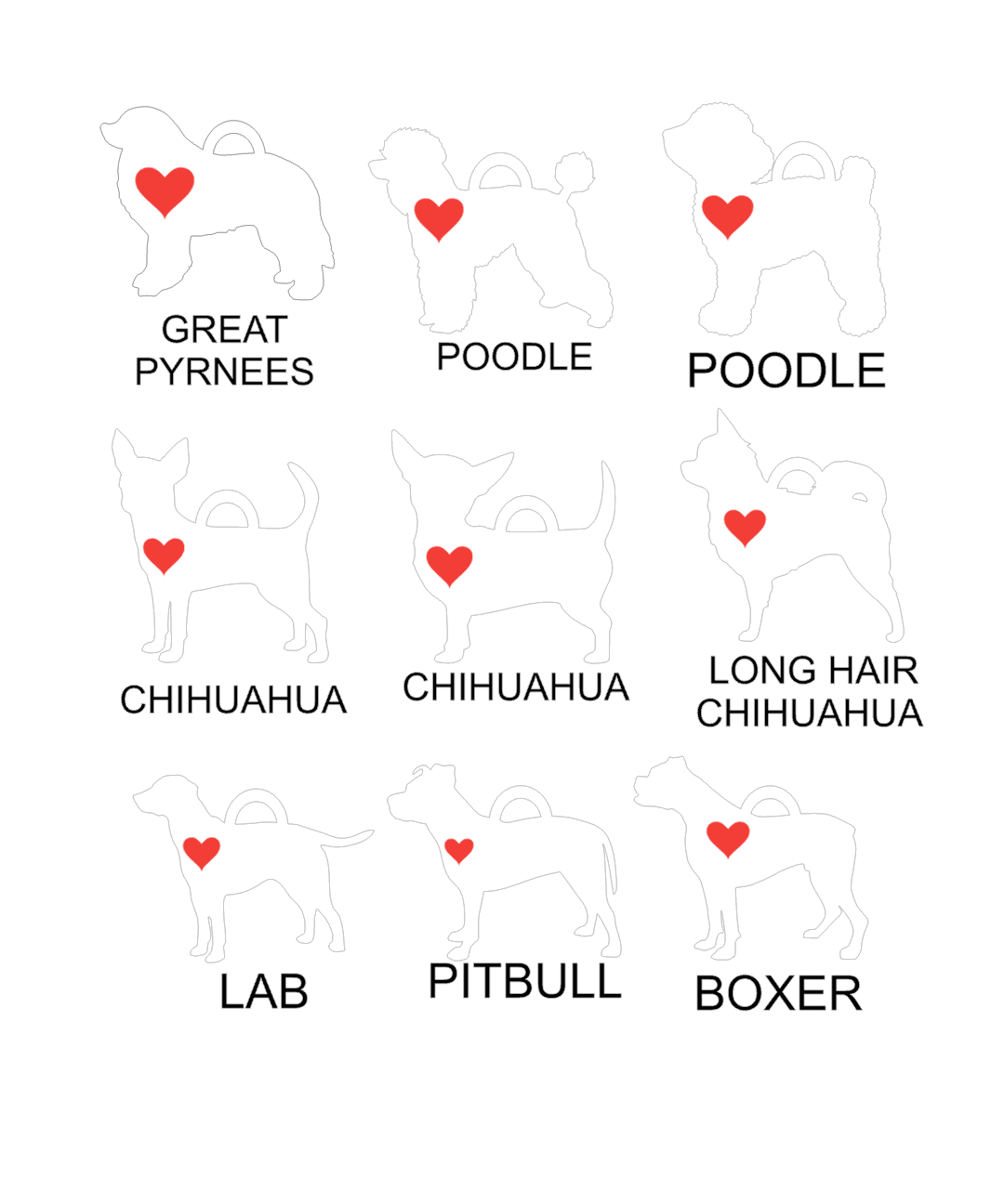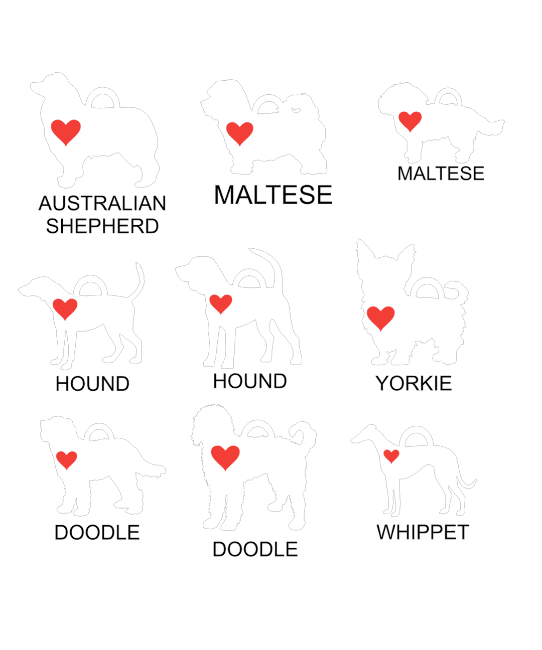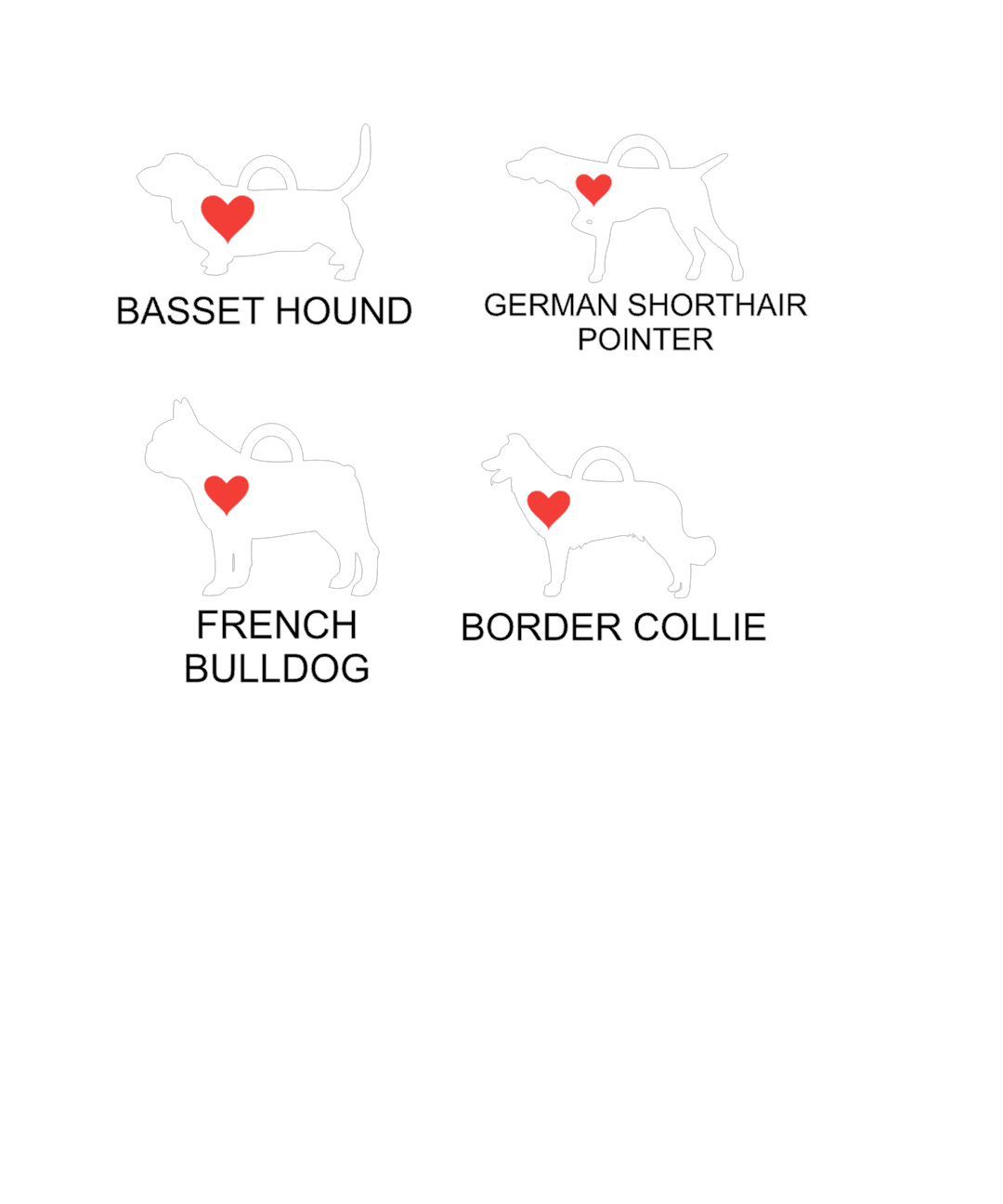 Each silhouette includes a heart and ready to add a name.