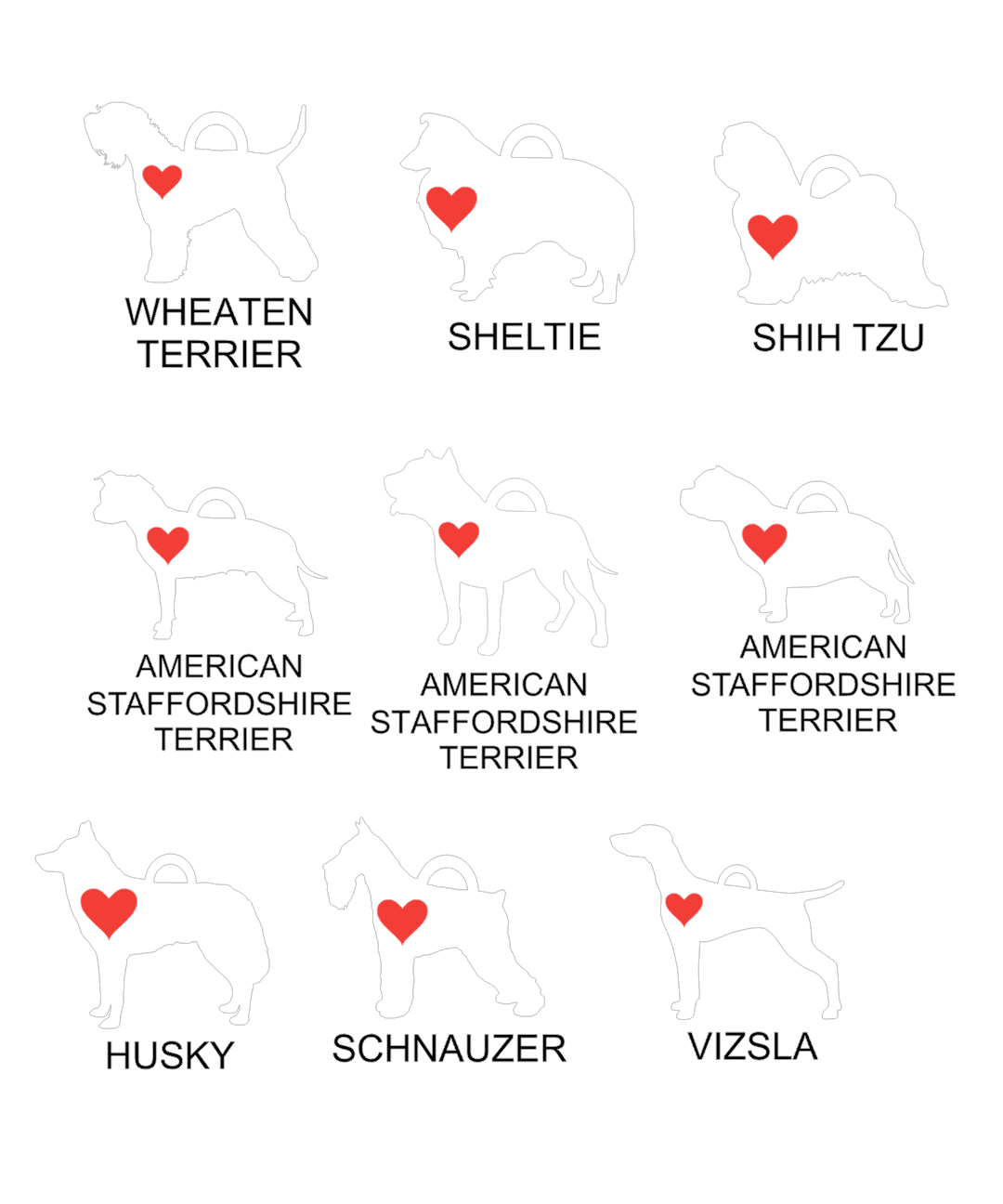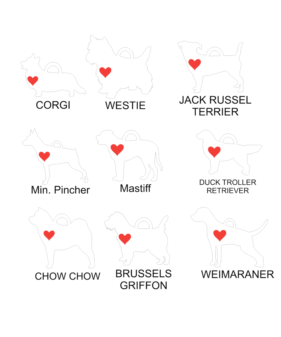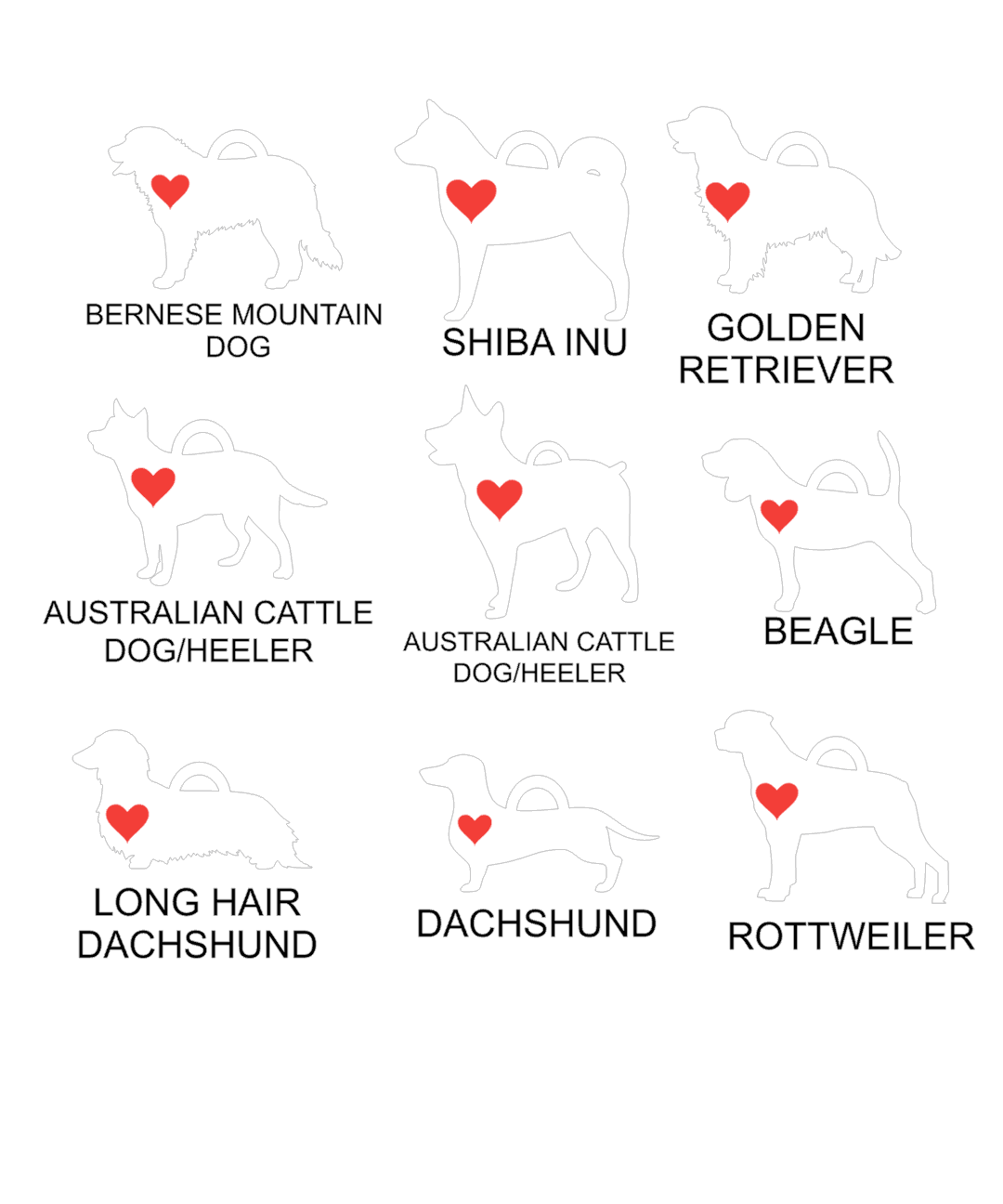 Each silhouette includes a heart and ready to add a name.