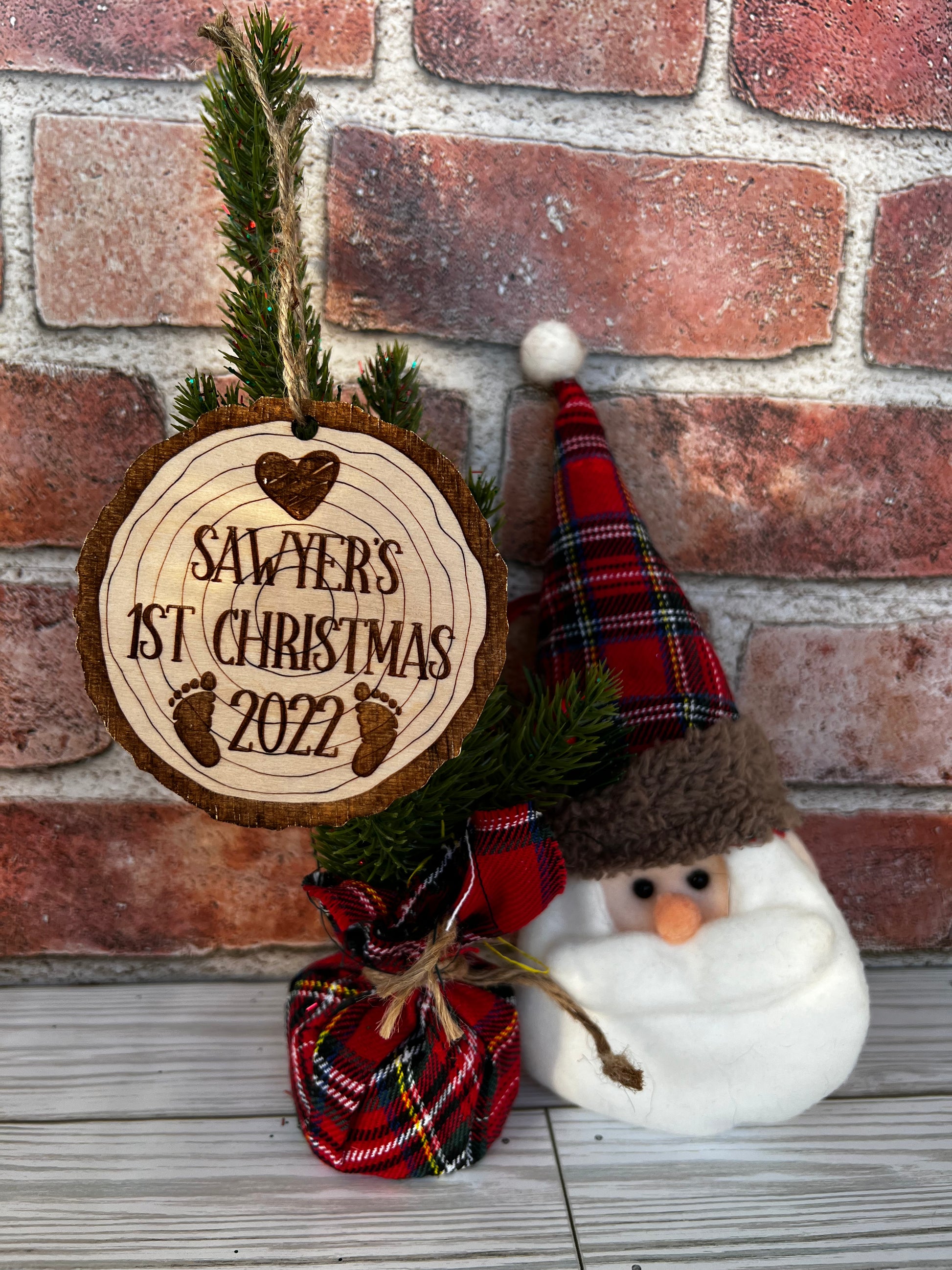 These ornaments are perfect to remember your baby’s first Christmas. They are made out of wood and made to look like a wood slice ornament.