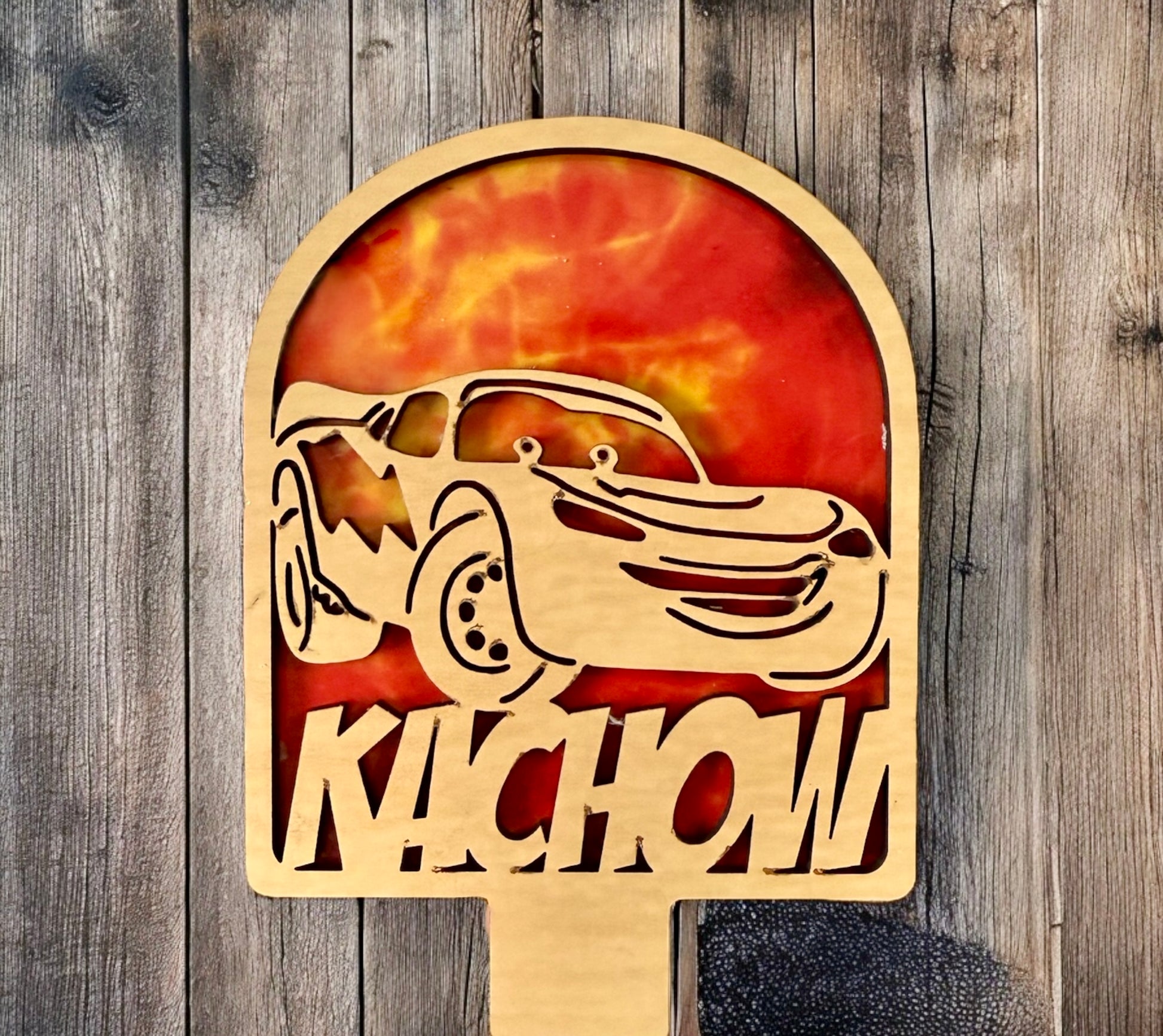 Rev up your space with our Lightning McQueen "Kachow" Nightlight! Featuring the legendary race car himself with his iconic catchphrase "Kachow", this nightlight is set against a bold flame background, bringing the thrill of the racetrack right into your home. Perfect for kids, race fans, and Disney lovers alike, this nightlight adds a fun and vibrant glow to any room.