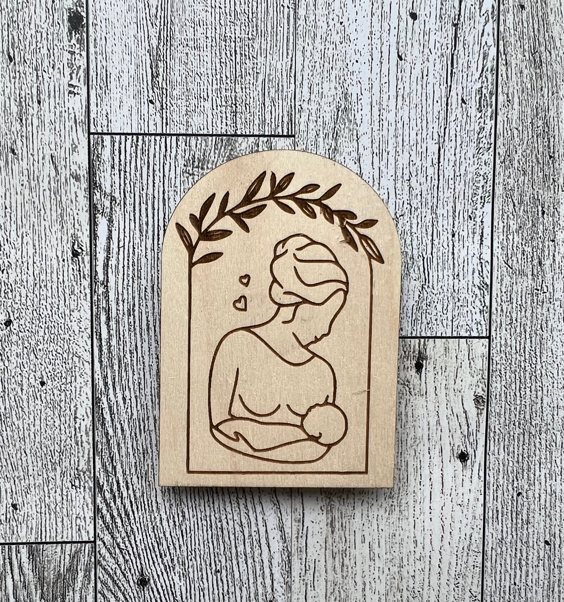 The magnet measures 3.5" W x 2.5" H and made out of quality Maple Wood.