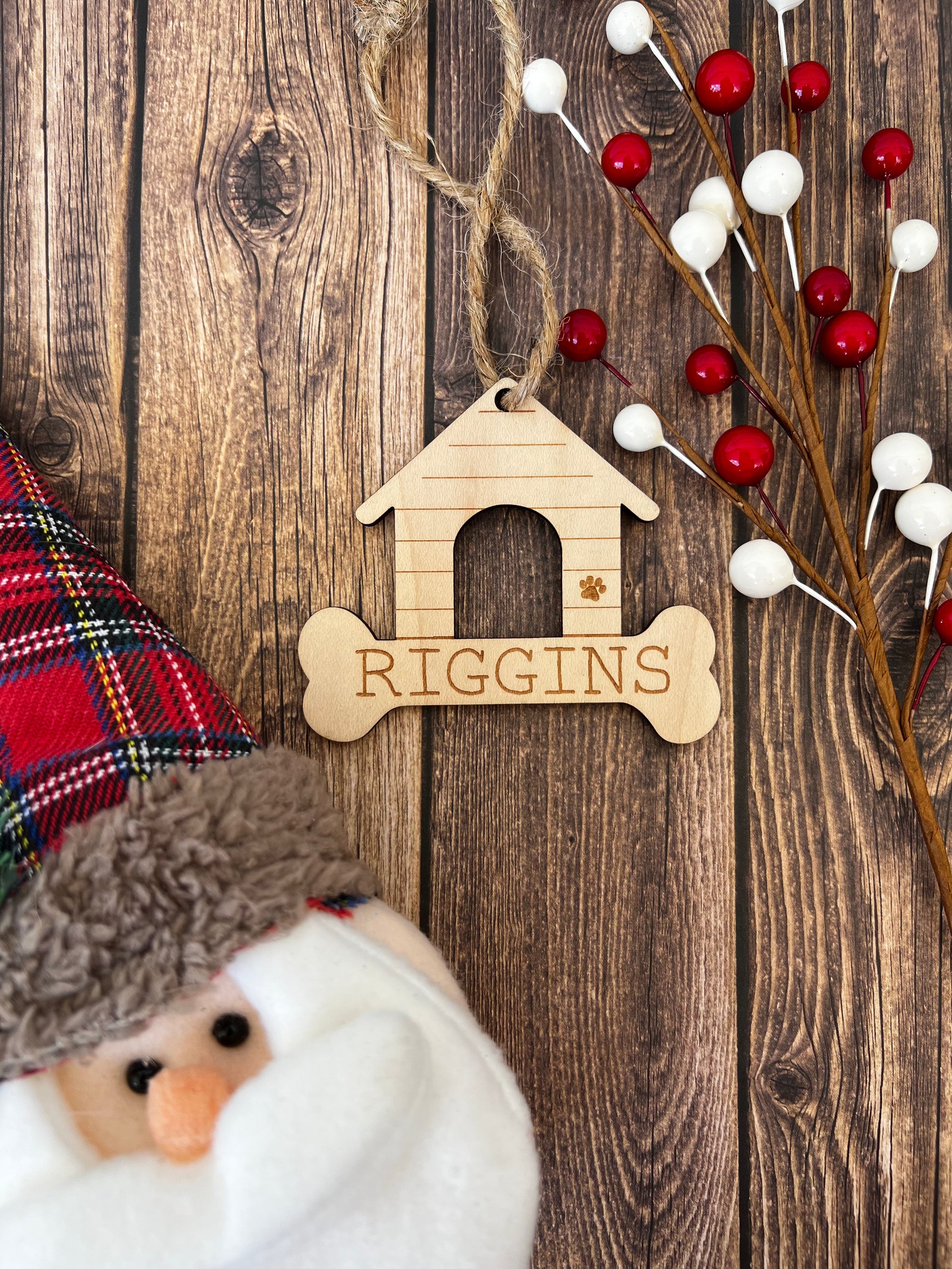 Add a playful touch to your holiday décor with this adorable dog house ornament, complete with a personalized bone featuring your pup’s name!