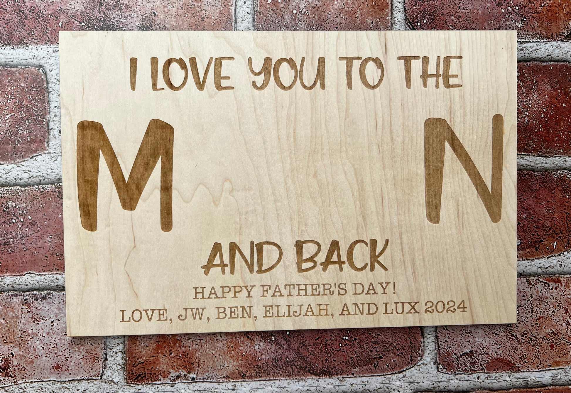Heartfelt Message: The sign features the endearing phrase "I love you to the moon and back," a timeless expression of love and affection that perfectly encapsulates the bond between father and child.
