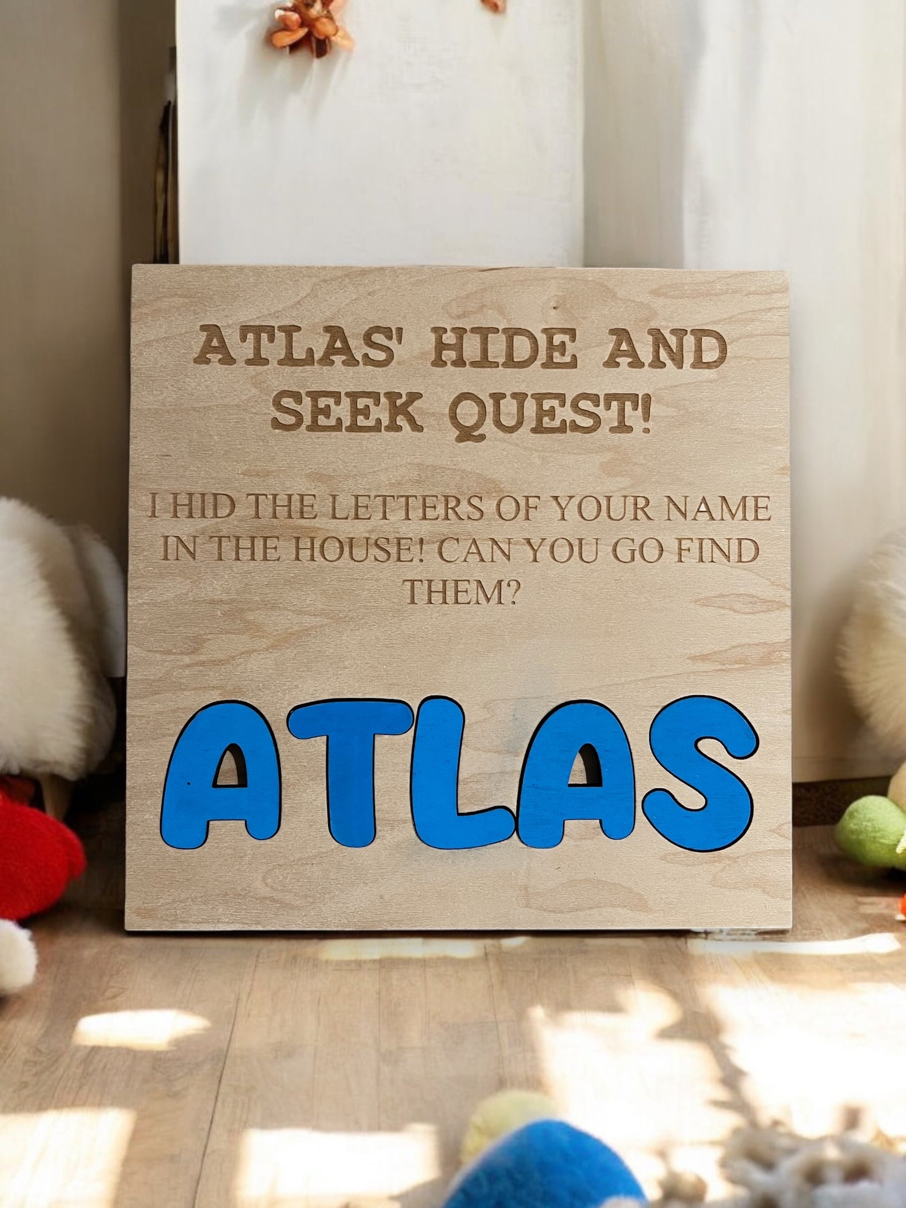 Unleash the fun and educational potential of playtime with our Custom Name Wooden Hide and Seek Puzzle Game! Perfect for little adventurers, this unique game combines the thrill of hide and seek with the challenge of a puzzle, all while helping kids learn the letters of their name.