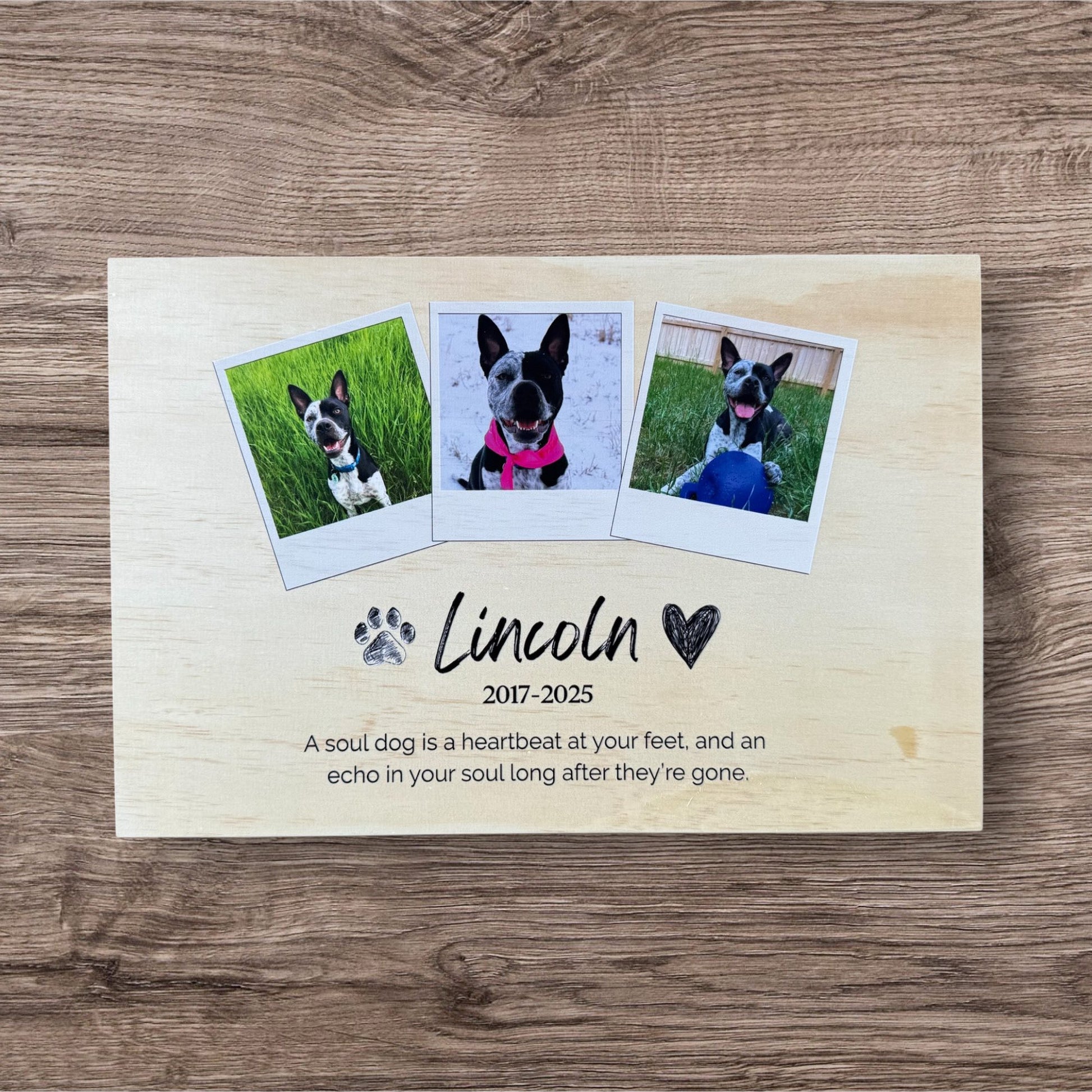 This memorial box is a meaningful way to honor the love, loyalty, and joy your pet brought into your life. Custom-created with care, it becomes a lasting tribute to your faithful companion.