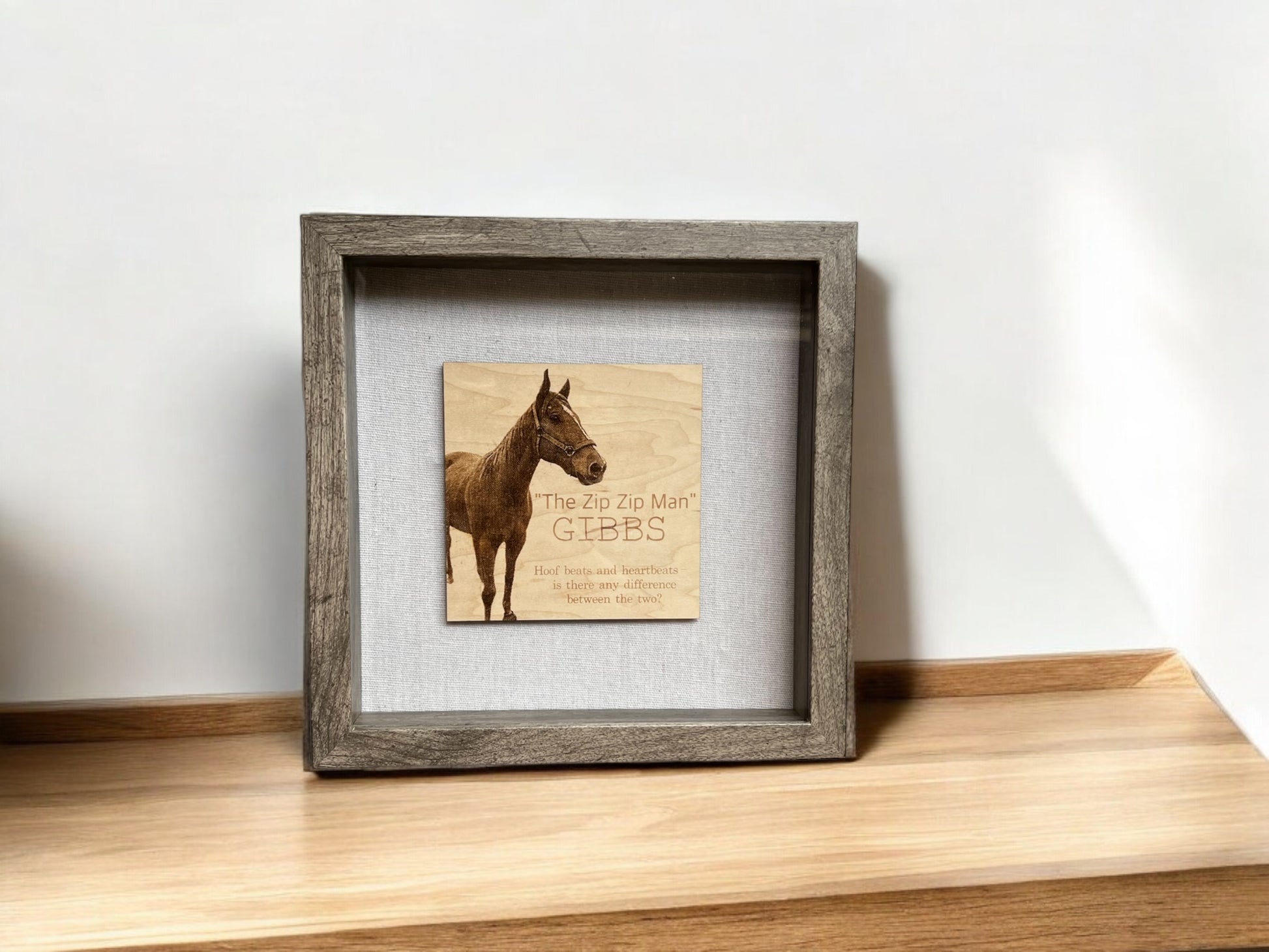 Add a personal touch to your home decor with this custom shadow box featuring a 5x5 maple wood insert engraved with a special photo and quote. The 9x9 shadow box is the perfect size to display on a shelf or hang on a wall, creating a unique and meaningful piece for your space. This custom shadow box makes a thoughtful gift for loved ones or a beautiful addition to your own home. Personalize it with your favorite photo and meaningful quote for a truly one-of-a-kind display that will bring joy and warmth to any room. Cherish those special moments with this custom engraved shadow box.