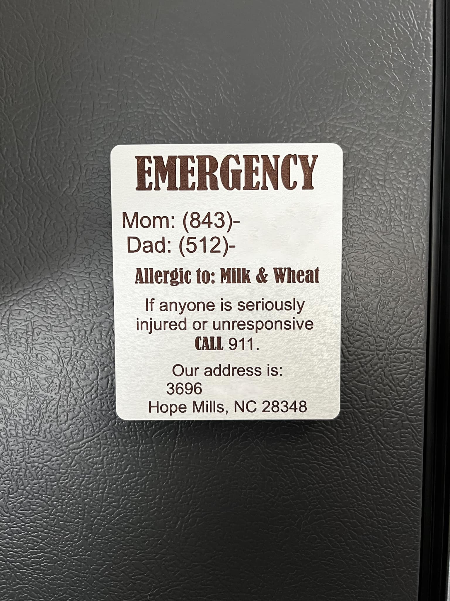 Stay prepared and keep your family safe with our Emergency Magnet crafted from high quality eucalyptus wood. This handy magnet features mom and dad's phone numbers, any allergies for the kids, and your address for easy access in case of an emergency. Perfect for babysitters and caregivers, as well as kids who may need the information. Place it on your fridge for quick reference and peace of mind. And remember, in case of a true emergency, dial 911 immediately. Stay organized and stay safe with our Emergency Magnet.