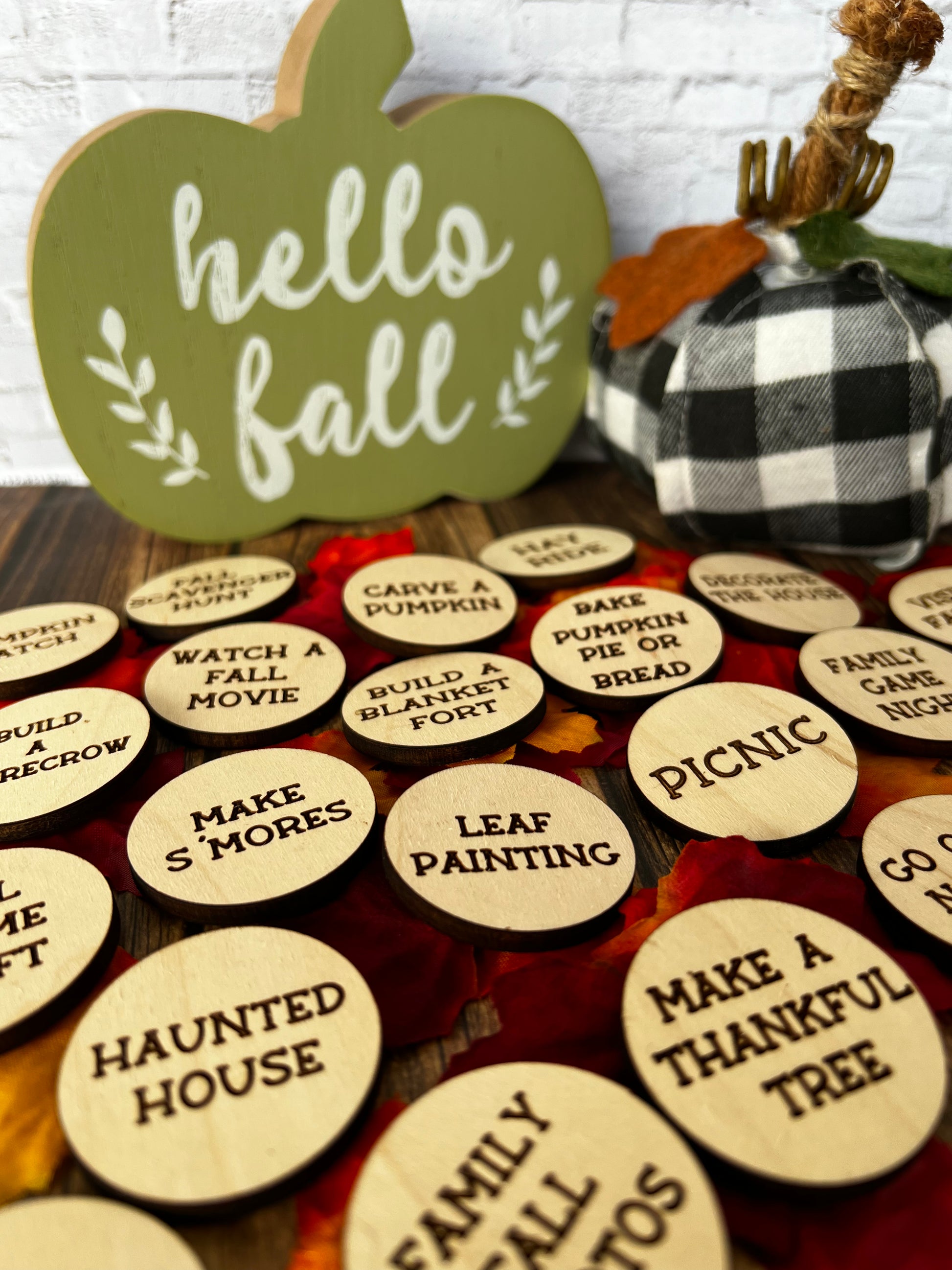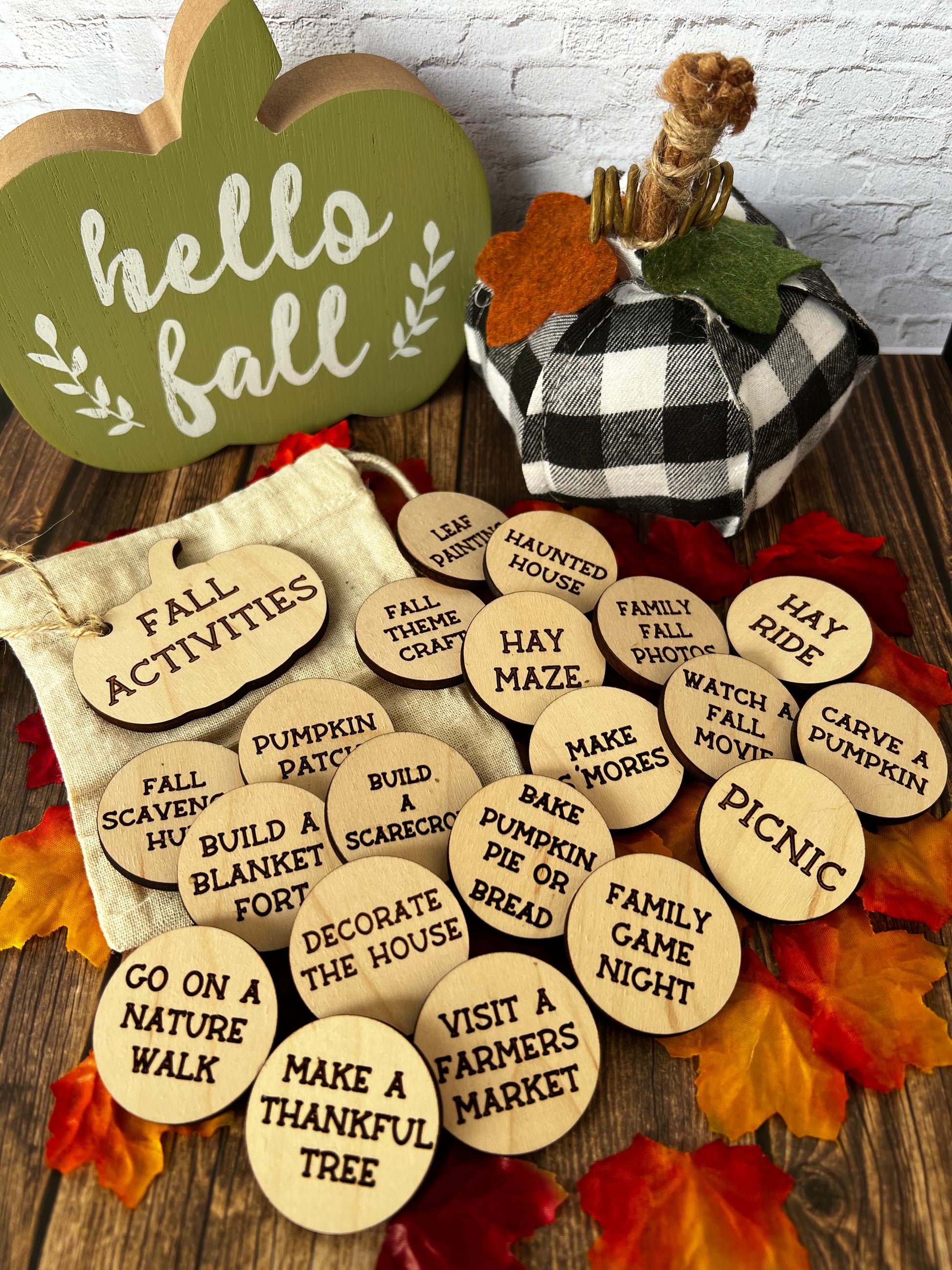 You will get the 20 tokens pictured, pumpkin fall activity tag, and the pouch for the tokens. These tokens can be used year after year.