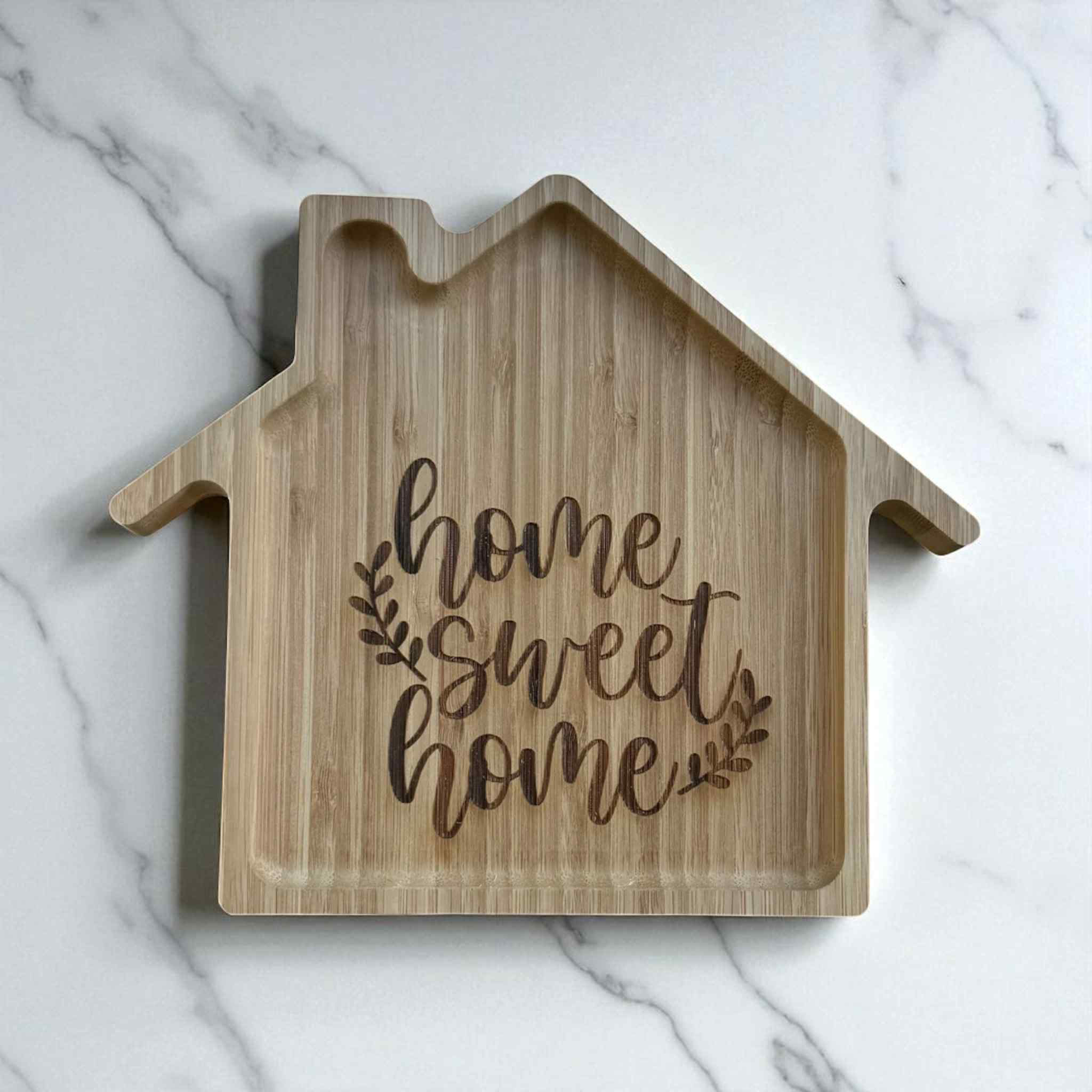 House Shaped Bamboo Trinket Tray – “Home Sweet Home”