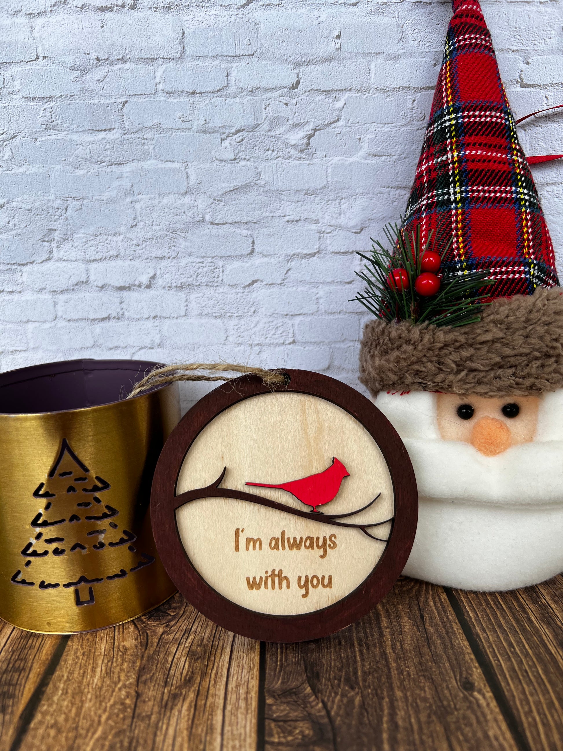 Features a red cardinal and engraved is “I’m always with you”. I can change the writing upon request.