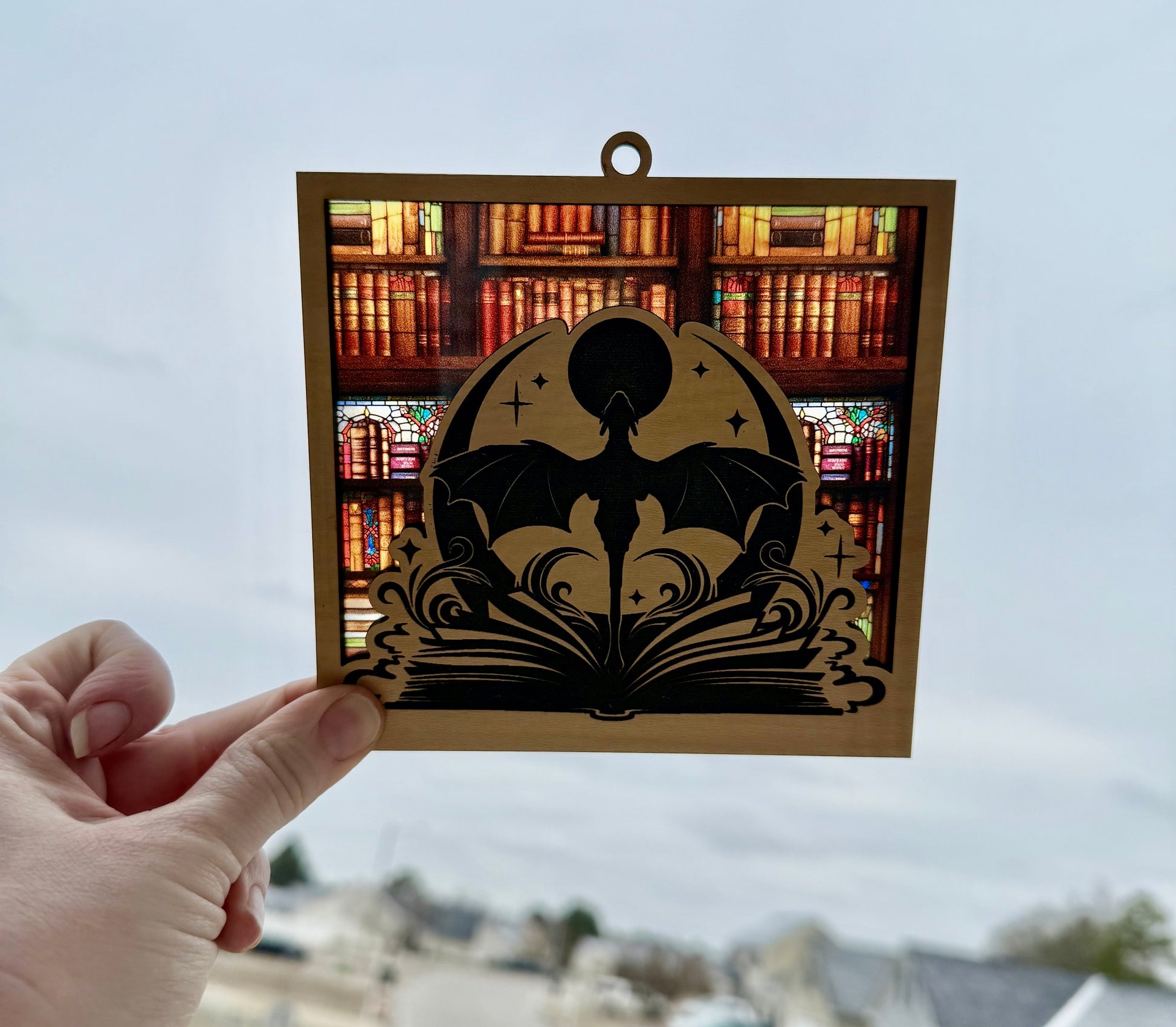 🛒 Let your imagination soar with this magical Dragon & Moon Stained Glass Sun catcher—a beautiful reminder of the adventure found within the pages of a book! 🐉📚🌙