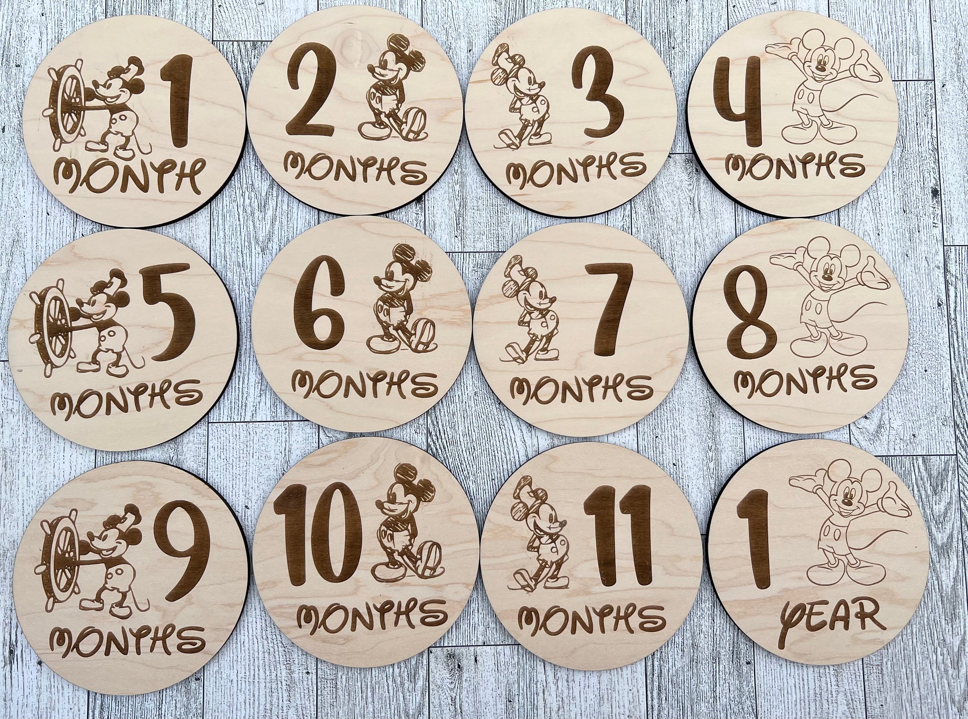 This is a full milestone set that is engraved on Maple wood. Each sign measures 4.5”.