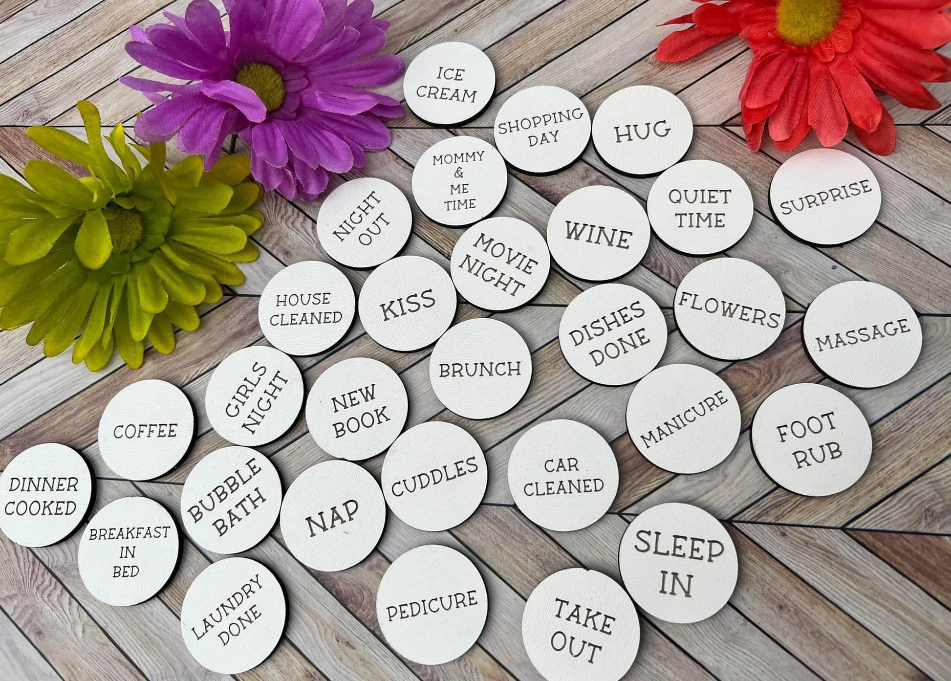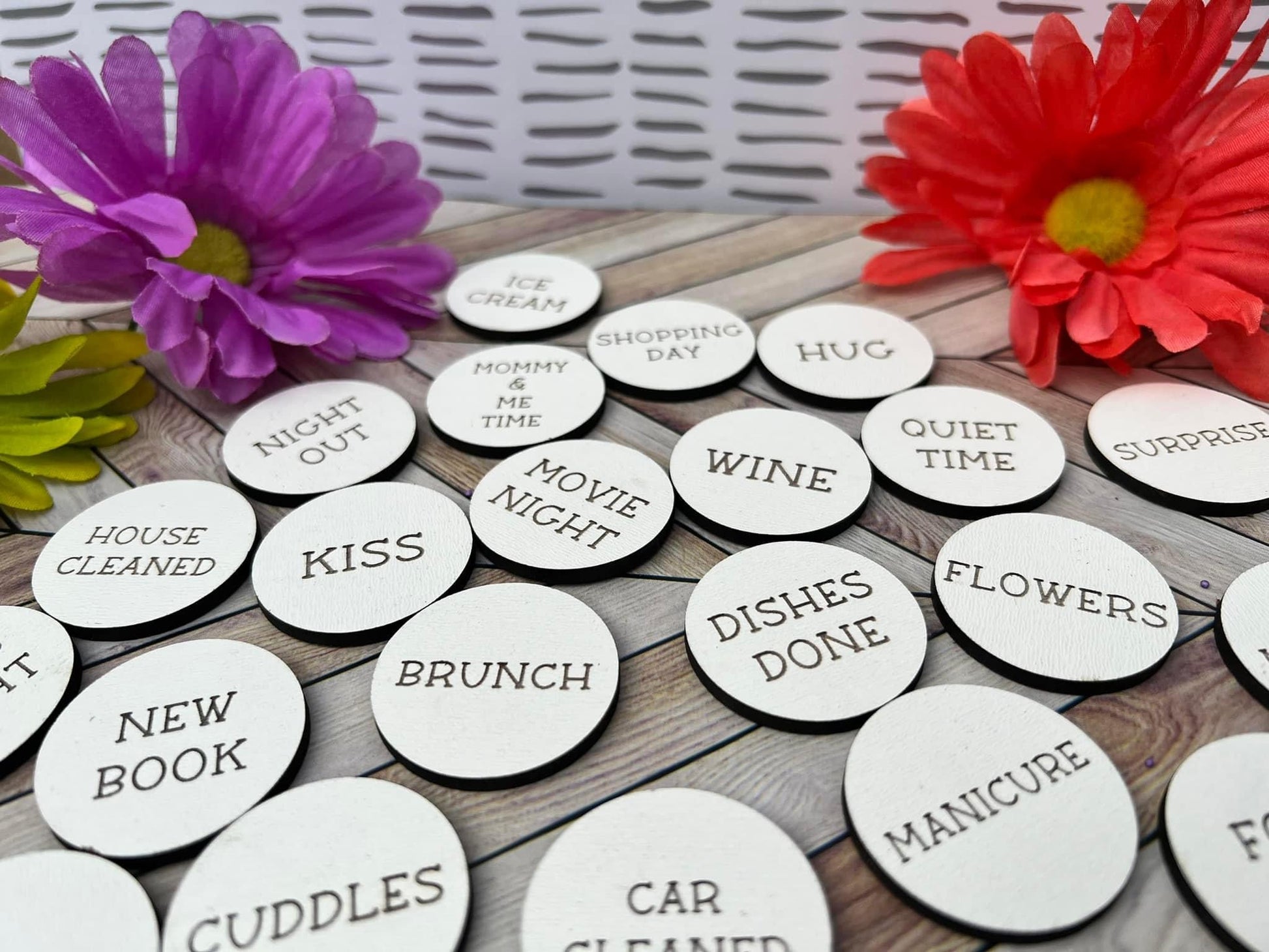 This set comes with 30 tokens and is a perfect way to help spoil that special lady throughout the year and not just one day. Does come with a bag to hold the tokens.
