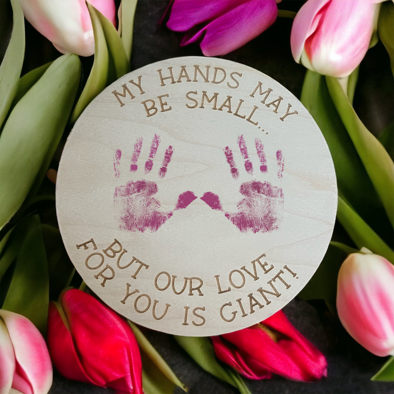 Choose either 6” or 8” and complete with your kid(s) handprints to give to the special mom or grandma.