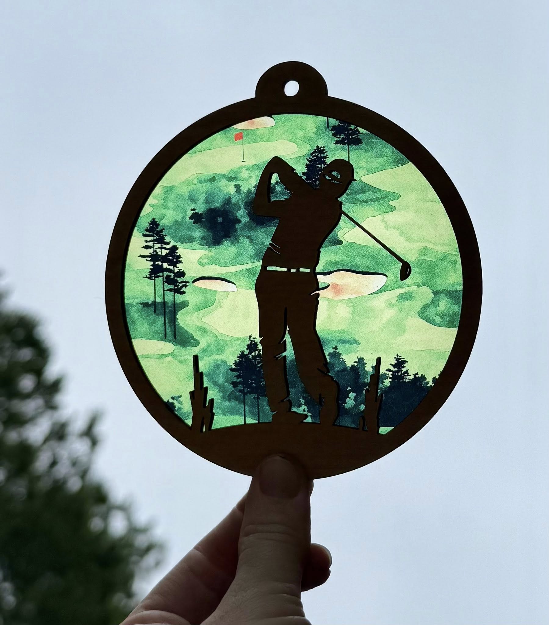 Golfer Sun Catcher – Custom Background | Unique Gift for Golf Lovers