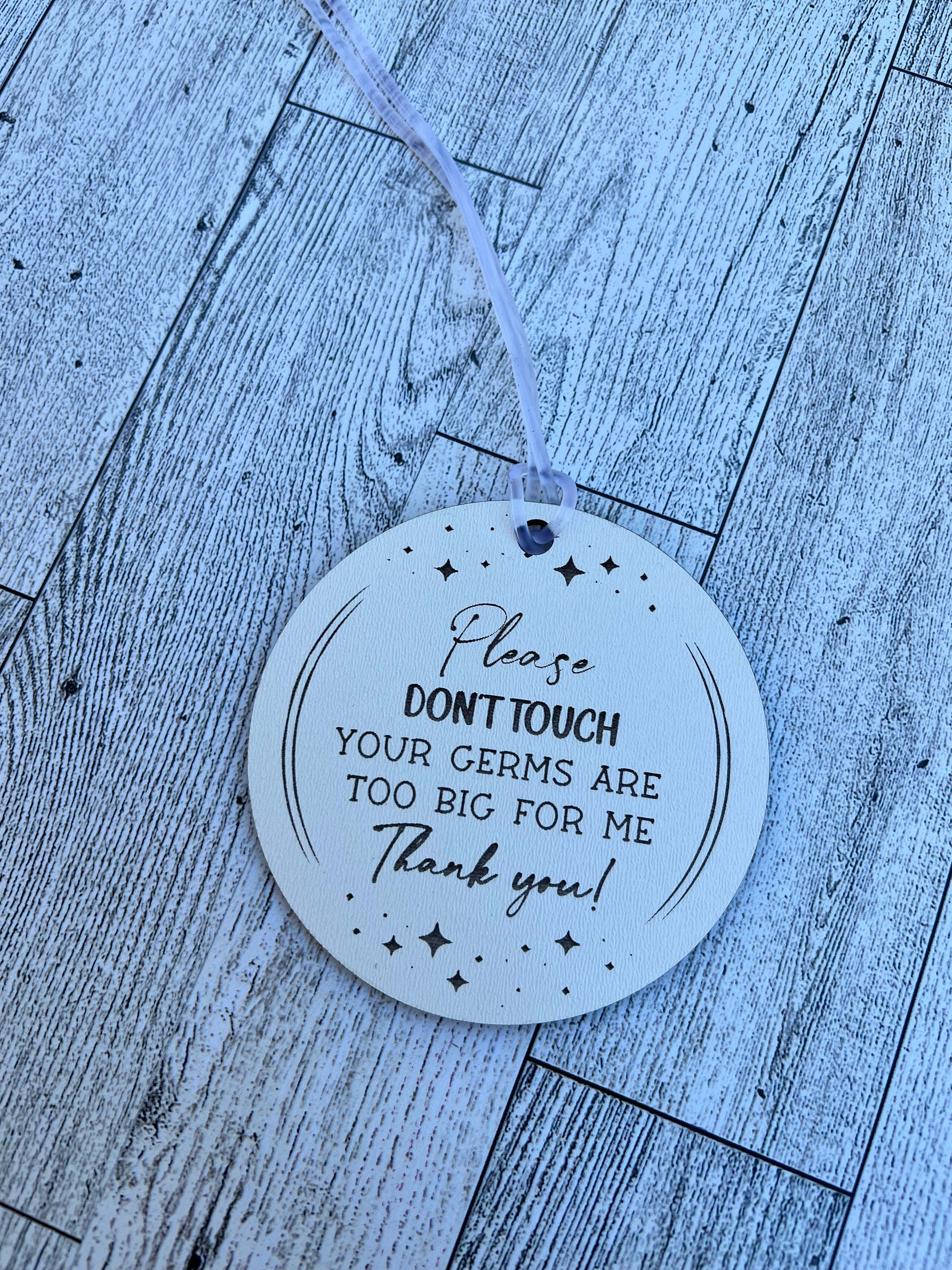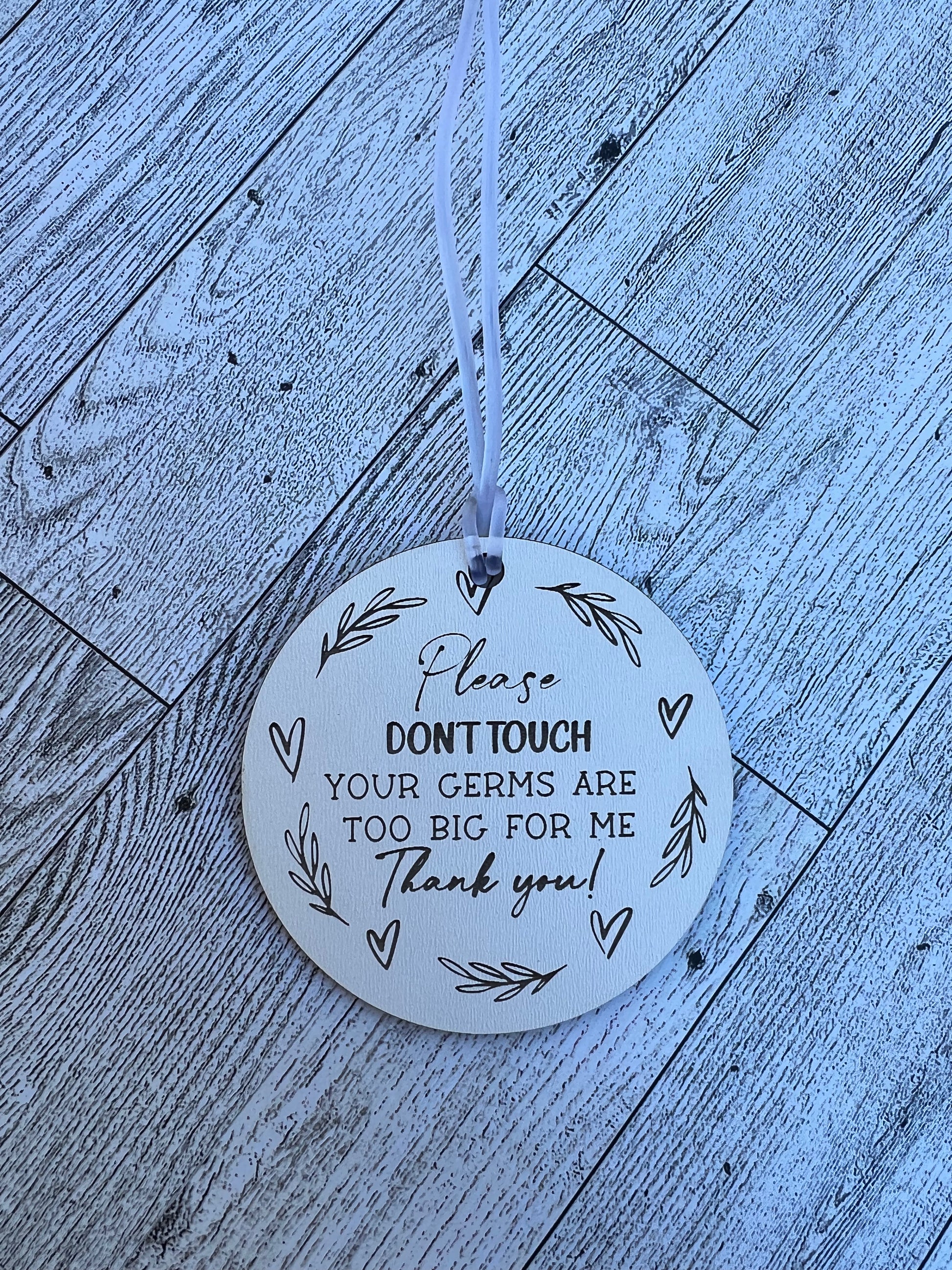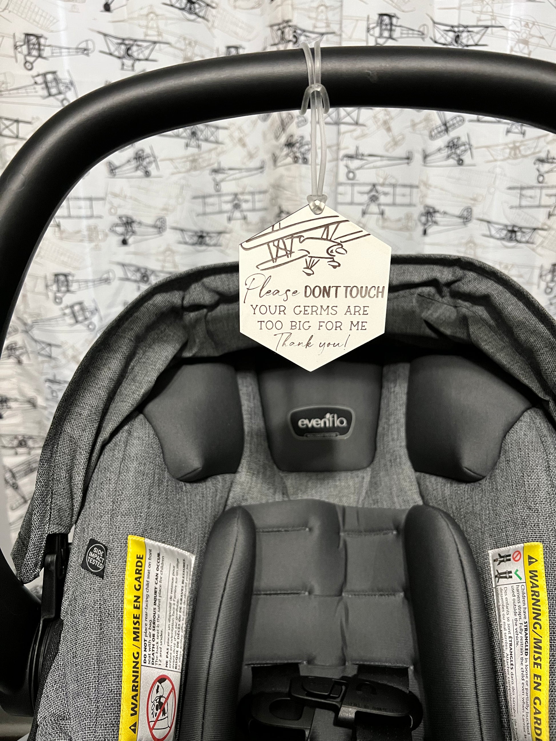 Having strangers wanting to touch your sweet little one? Hang this on the stroller to help deter those stranger's hands.