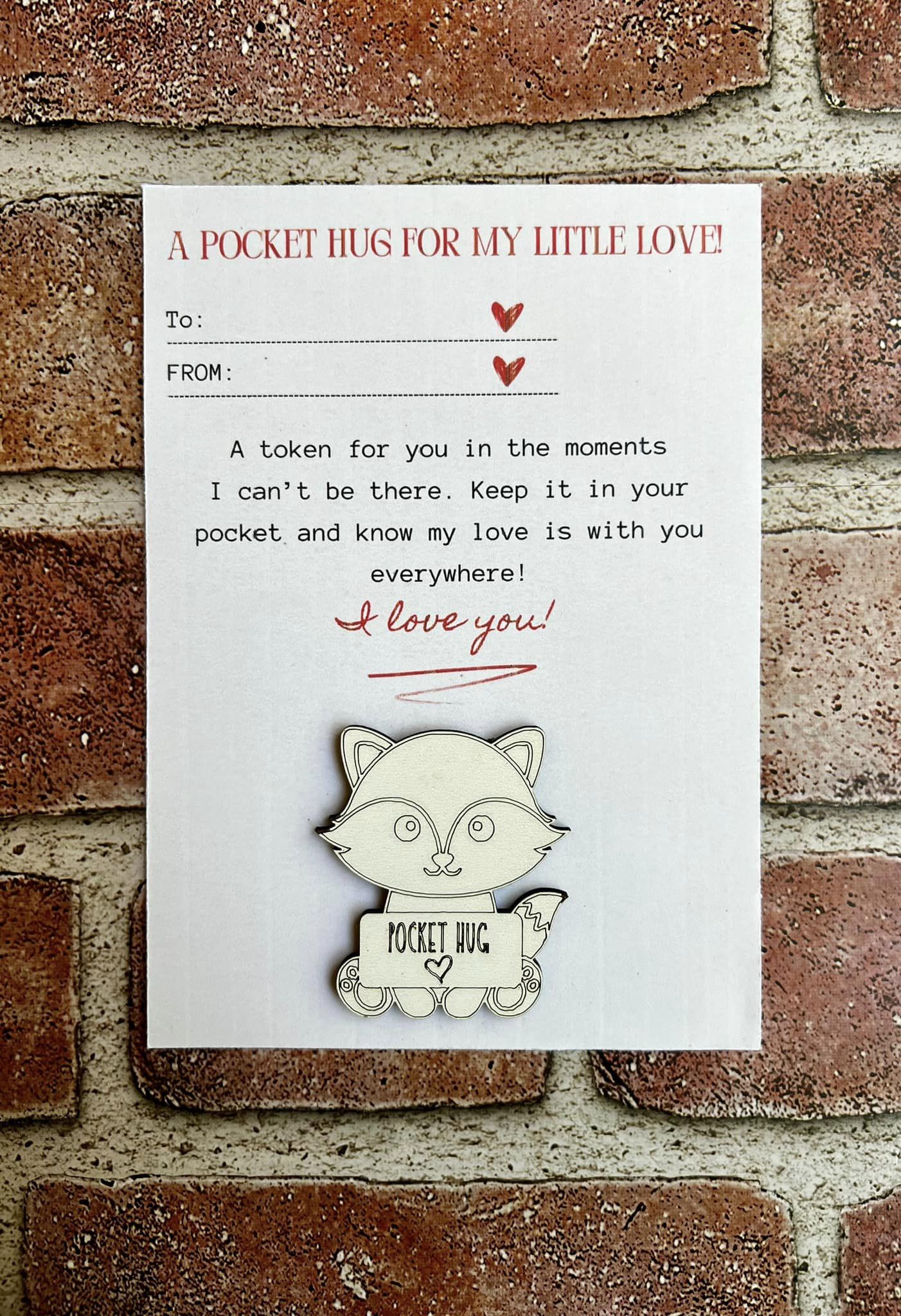 Send your child off to their first day of school, daycare, or any other setting that may make them nervous with a comforting Pocket Hug. Our adorable fox pocket hug is designed to provide a sense of reassurance and love, making those big transitions a little easier. Crafted from high-quality Eucalyptus wood, this pocket hug is a heartfelt token that your child can keep with them throughout the day.
