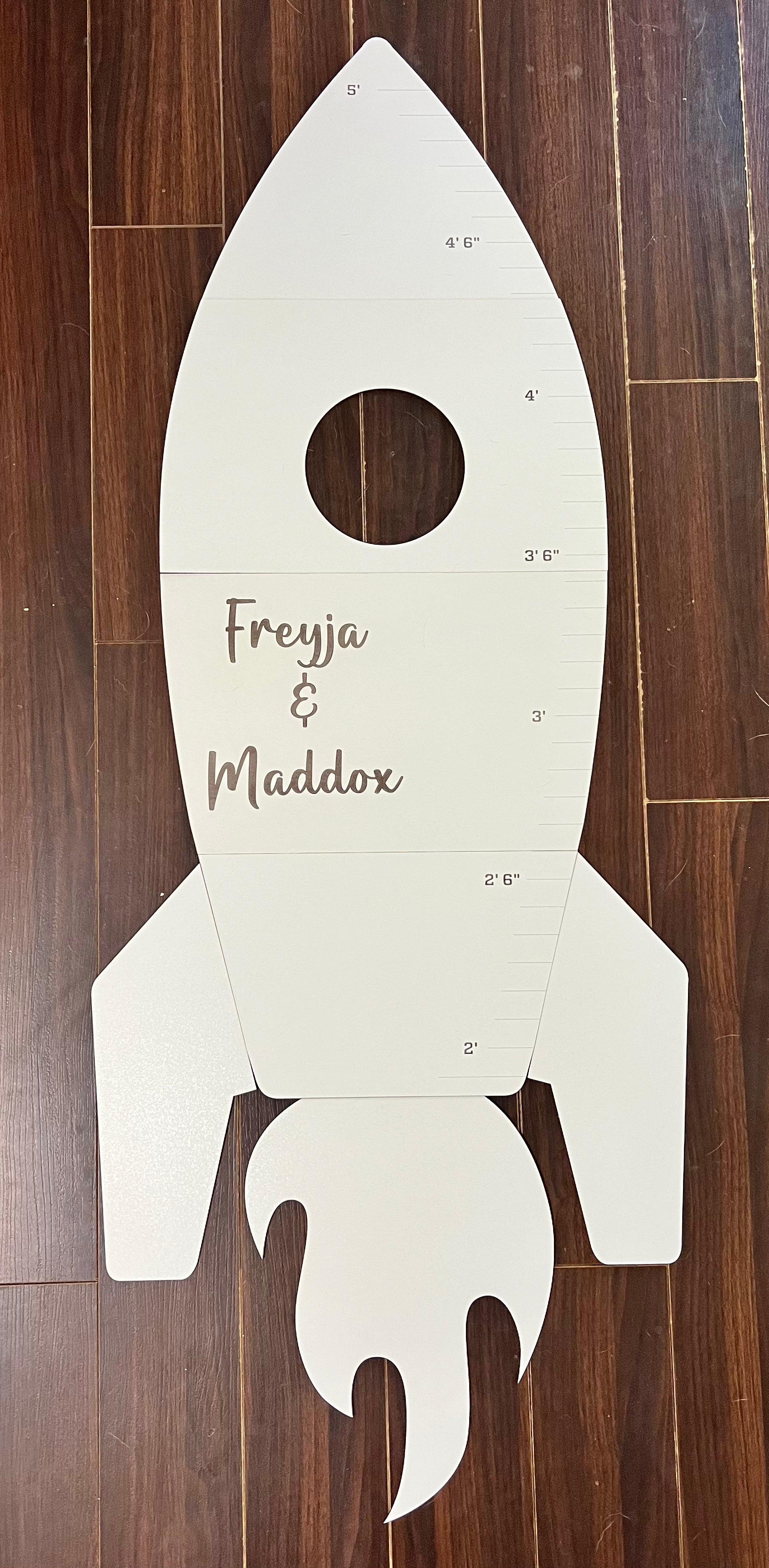 Growth chart is made out of Eucalyptus wood. Measures 54" H x 23" W
